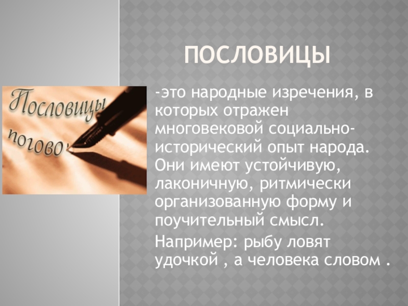 -это народные изречения, в которых отражен многовековой социально-исторический опыт
