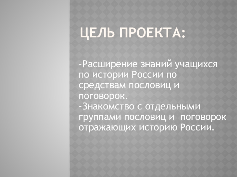 -Расширение знаний учащихся по истории России по средствам пословиц и