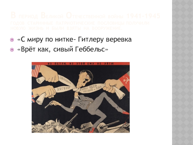 Слайд 18В период Великой Отечественной войны 1941-1945 годов старинные патриотические пословицы получили