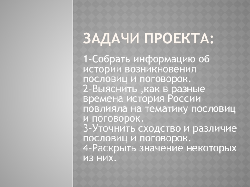 1-Собрать информацию об истории возникновения пословиц и поговорок.