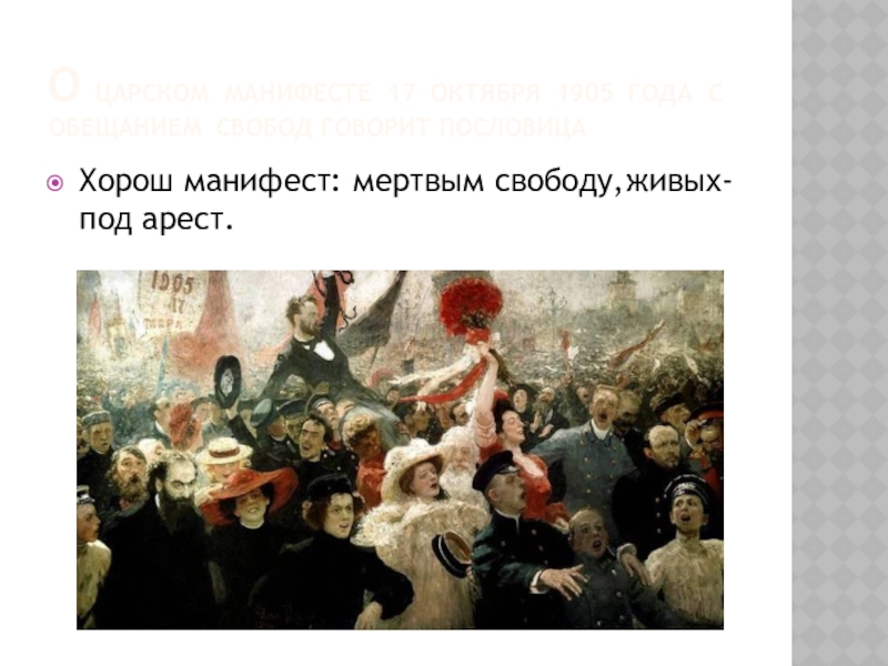 Слайд 16О царском манифесте 17 октября 1905 года с обещанием