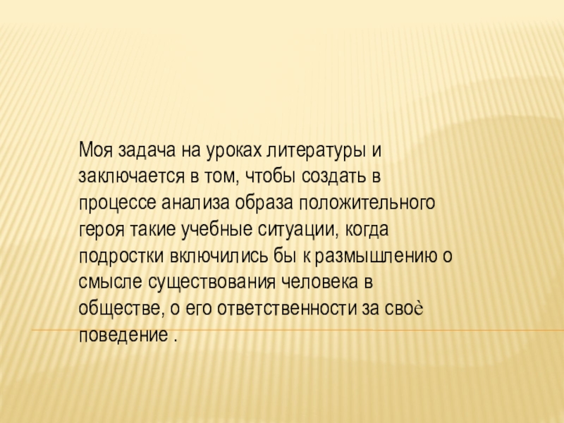 Слайд 3Моя задача на уроках литературы и заключается в том, чтобы создать