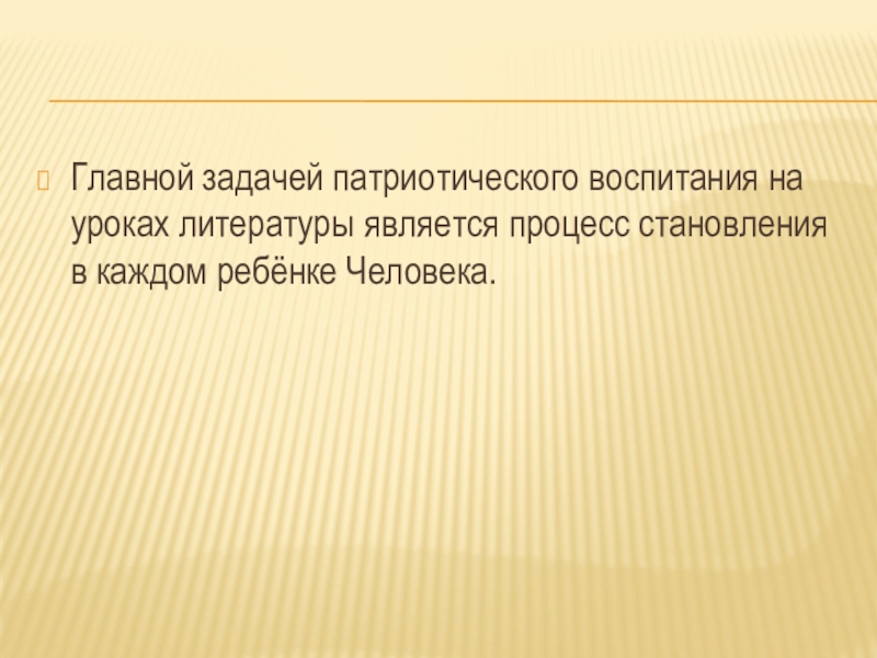 Слайд 5Главной задачей патриотического воспитания на уроках литературы является процесс становления в