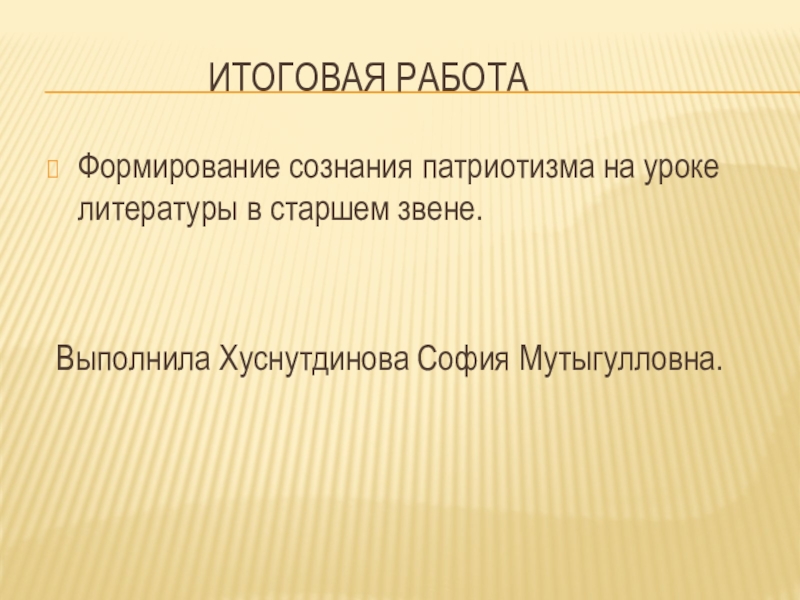 Формирование сознания патриотизма на уроке литературы в старшем звене.