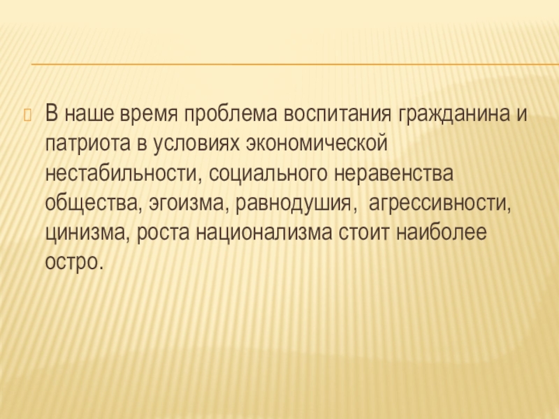 Слайд 4В наше время проблема воспитания гражданина и патриота в условиях экономической