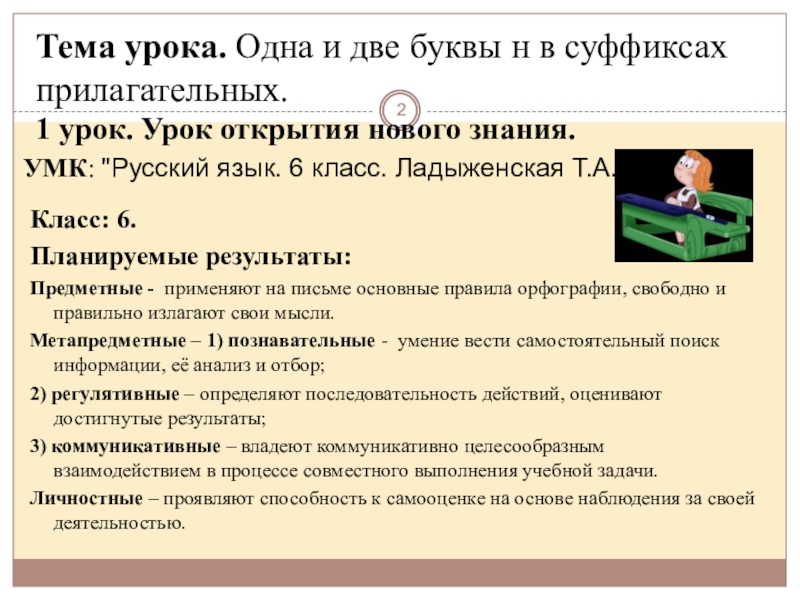 Тема урока. Одна и две буквы н в суффиксах прилагательных.