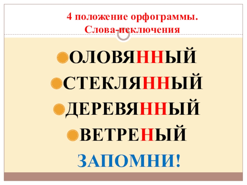 4. Это то положение орфограммы, над которым мы будем сегодня работать.