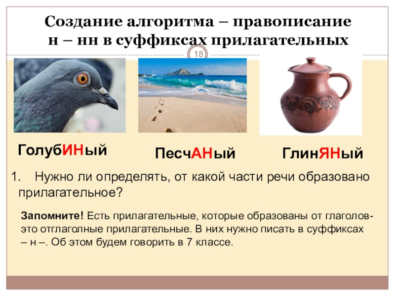 Запомните! Есть прилагательные, которые образованы от глаголов- это отглаголные прилагательные. В них нужно писать в суффиксах – н –. Об этом будем говорить в 7 классе.
