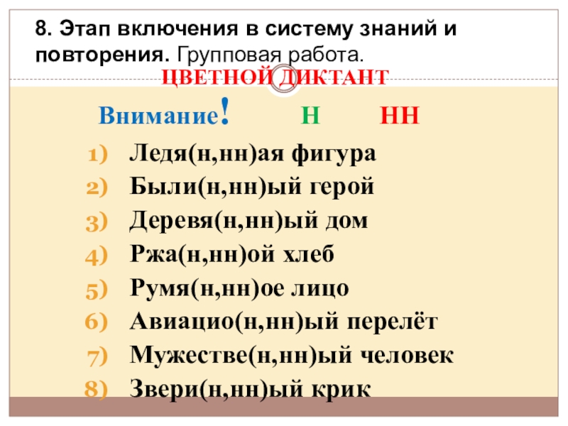 8. Этап включения в систему знаний и повторения. Групповая работа.