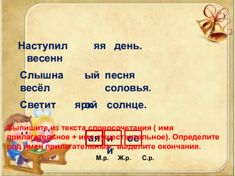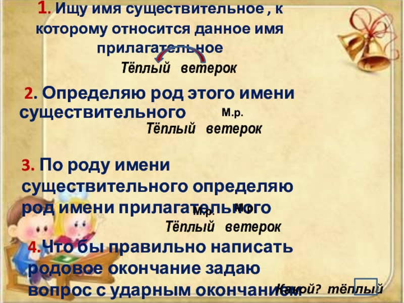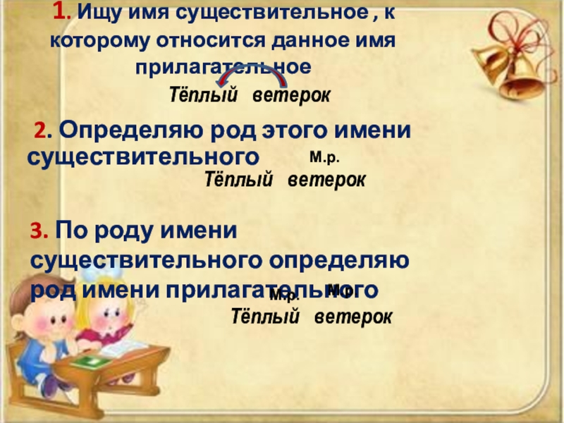 3. По роду имени существительного определяю род имени прилагательного