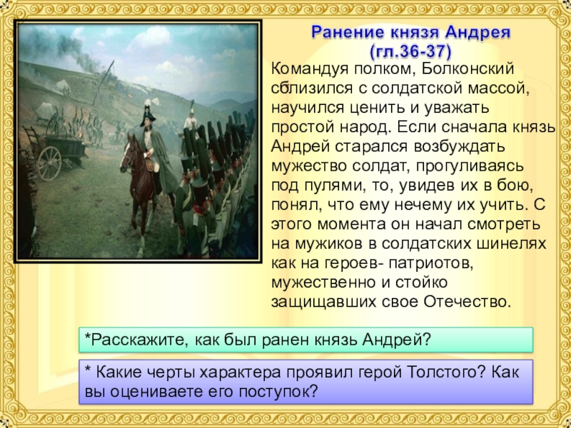 *Расскажите, как был ранен князь Андрей?