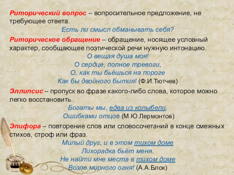 Анафора – повторение слов в начале стихов, строф, фраз.