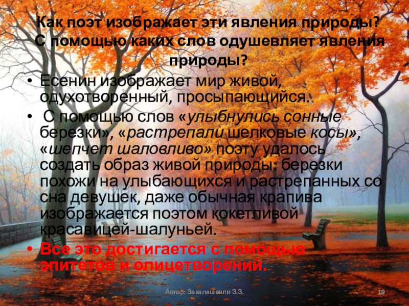 Есенин изображает мир живой, одухотворенный, просыпающийся.