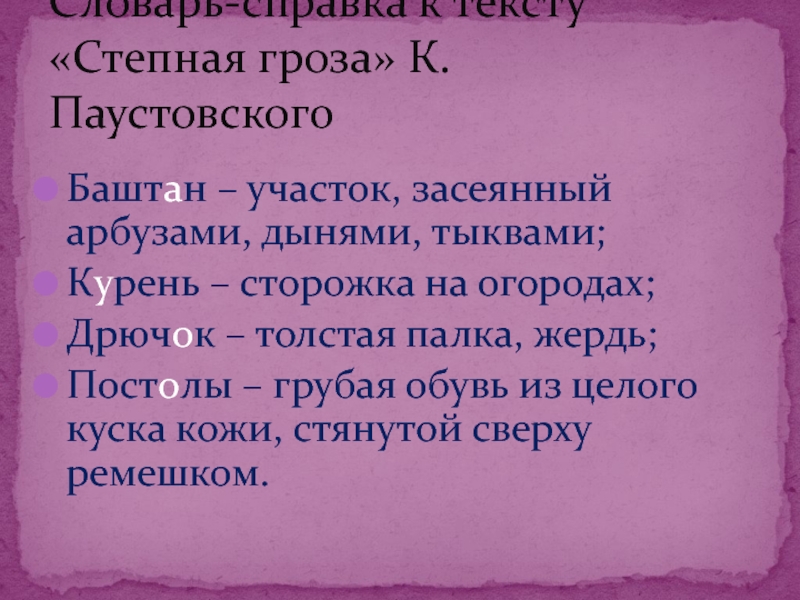 Словарь-справка к тексту «Степная гроза» К. Паустовского