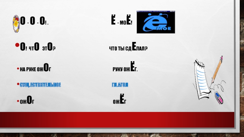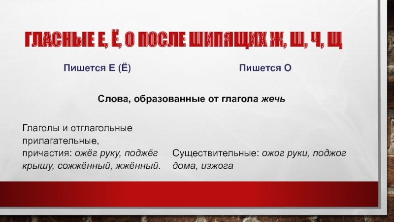 Гласные Е, Ё, О после шипящих Ж, Ш, Ч, Щ