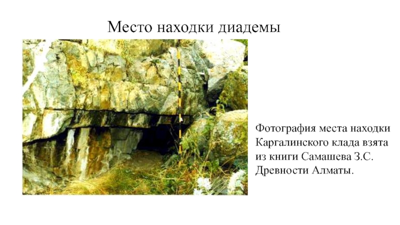 Место находки диадемы Фотография места находки Каргалинского клада взята из книги Самашева З.С. Древности Алматы.