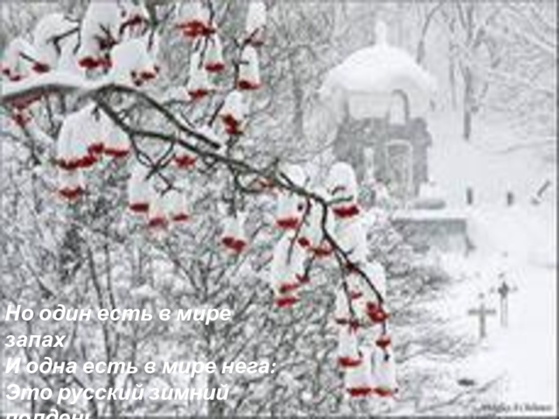 Но один есть в мире запахИ одна есть в мире нега:Это русский зимний полдень,Это русский запах снега.