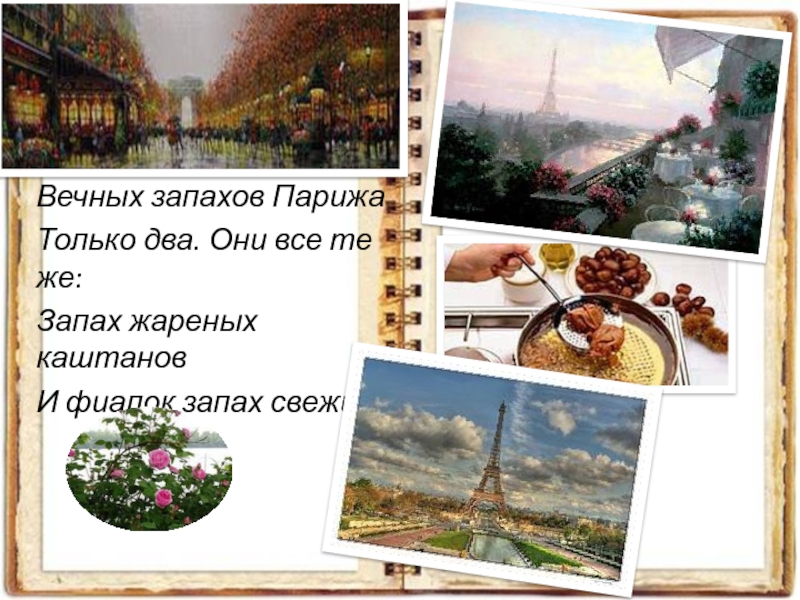 Вечных запахов ПарижаТолько два. Они все те же:Запах жареных каштановИ фиалок запах свежий.