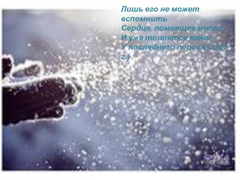 Лишь его не может вспомнитьСердце, помнящее много.И уже толпятся тениУ последнего порога.( 1927 г.)