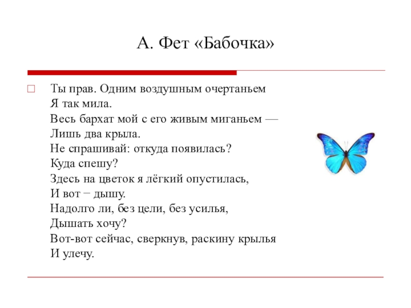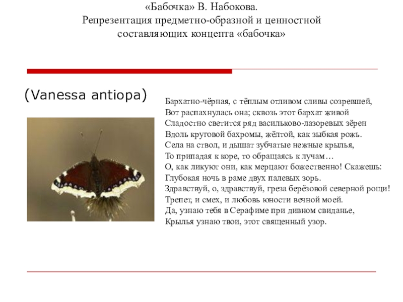 Образ бабочки. А.А. Фет «Бабочка» − В.В. Набоков «Бабочка».