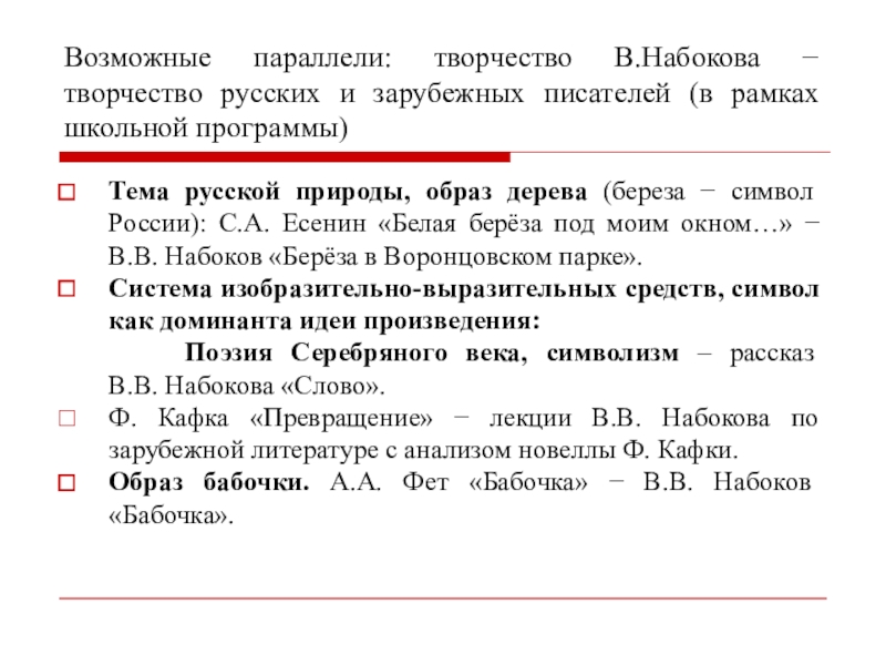 творчества В. Набокова в школьном
