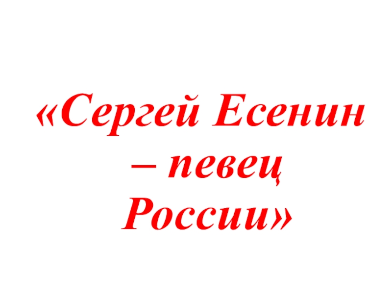 «Сергей Есенин – певец России»