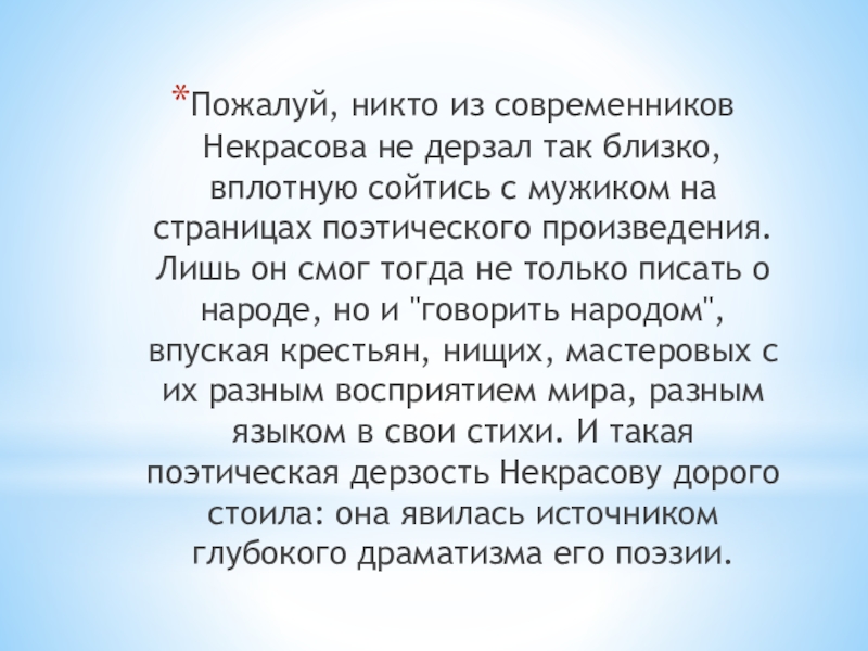 Слайд 5Пожалуй, никто из современников Некрасова не дерзал так близко, вплотную сойтись