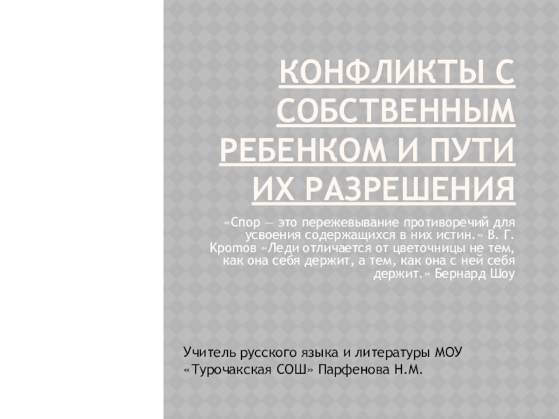 Слайд 1Конфликты с собственным ребенком и пути их разрешения