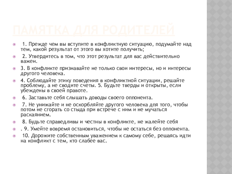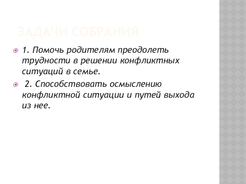 1. Помочь родителям преодолеть трудности в решении конфликтных ситуаций