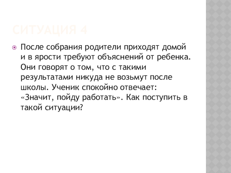 от ребенка. Они говорят о том, что с такими результатами никуда не возьмут после школы. Ученик спокойно отвечает: «Значит, пойду работать». Как поступить в такой ситуации?