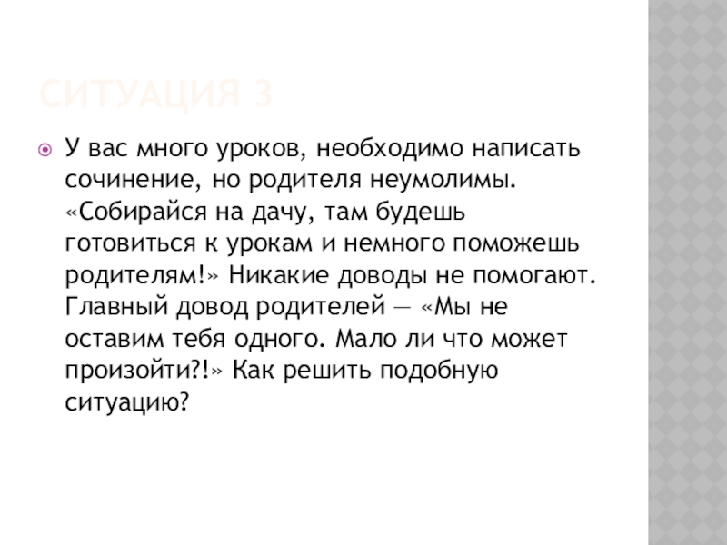 У вас много уроков, необходимо написать сочинение, но родителя неумолимы.