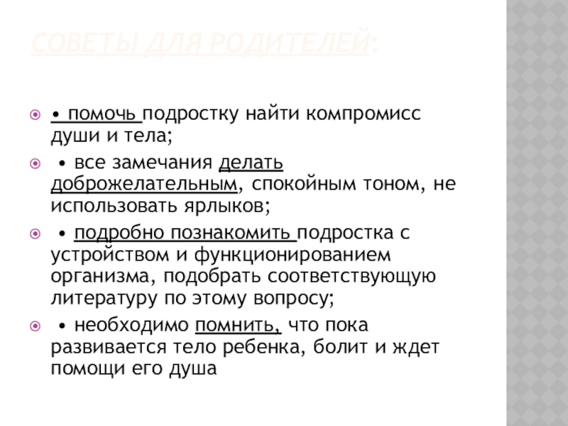 • подробно познакомить подростка с устройством и функционированием организма, подобрать соответствующую литературу по этому вопросу;
