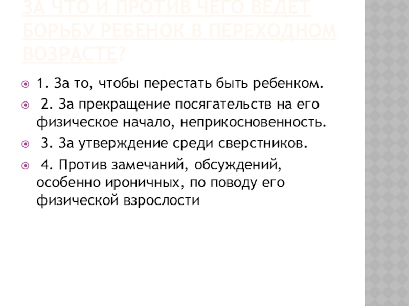 Слайд 18За что и против чего ведет борьбу ребенок в переходном возрасте?