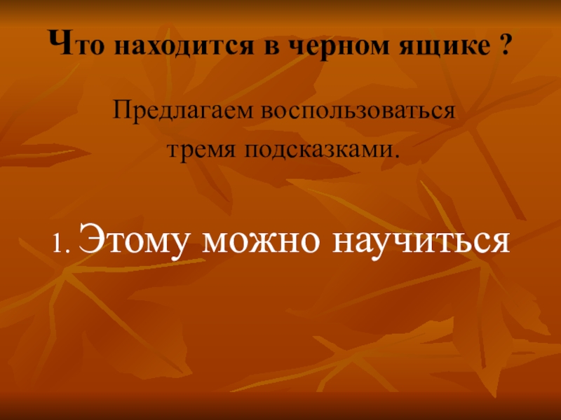 Что находится в черном ящике ? Предлагаем воспользоваться тремя подсказками.1. Этому можно научиться