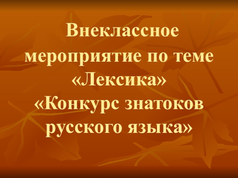 Слайд 1 Внеклассное мероприятие по теме «Лексика» «Конкурс знатоков русского языка»