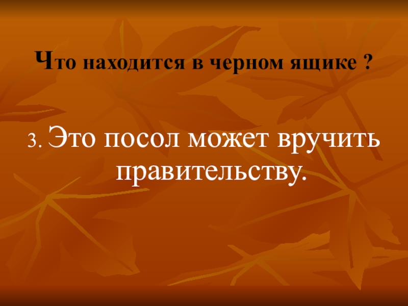 Что находится в черном ящике ?  3. Это посол может вручить правительству.