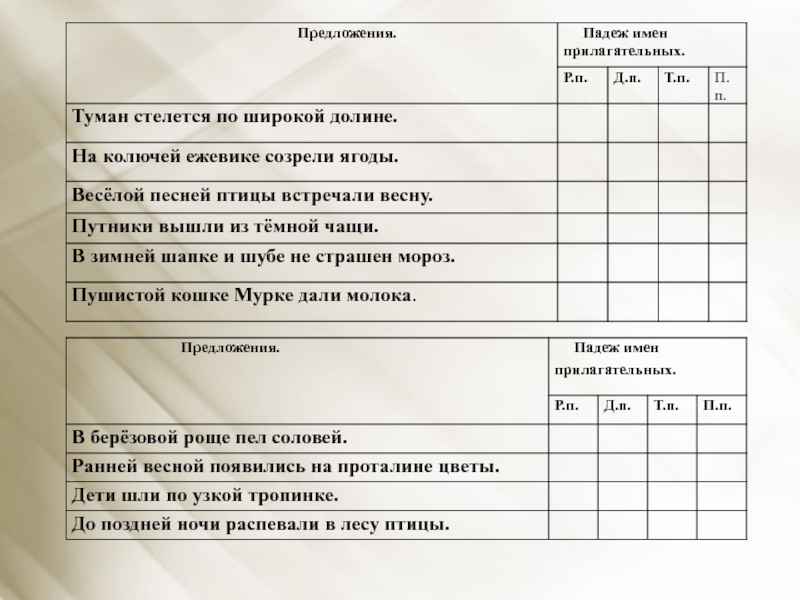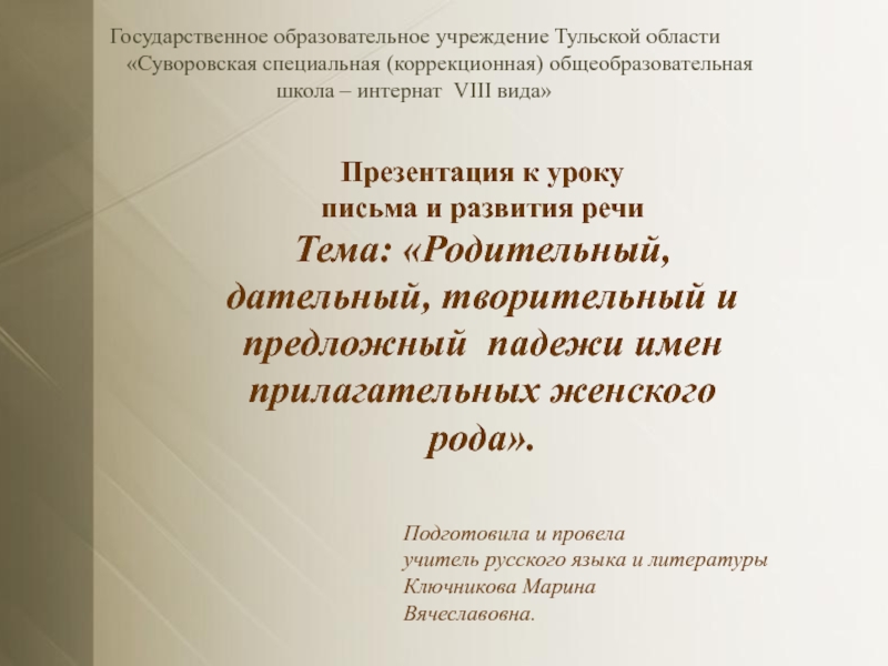 Тема: «Родительный, дательный, творительный и предложный падежи имен прилагательных женского рода».