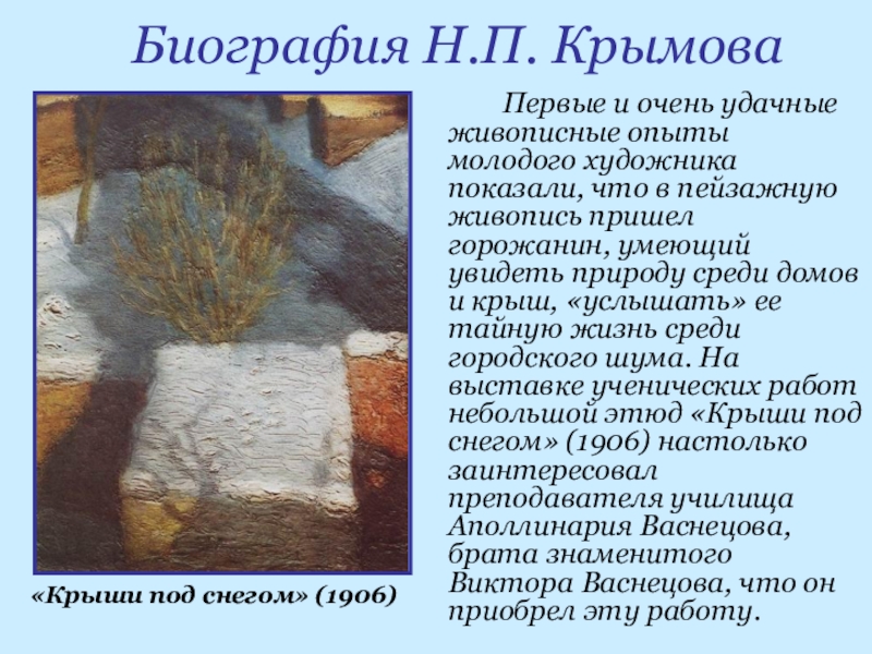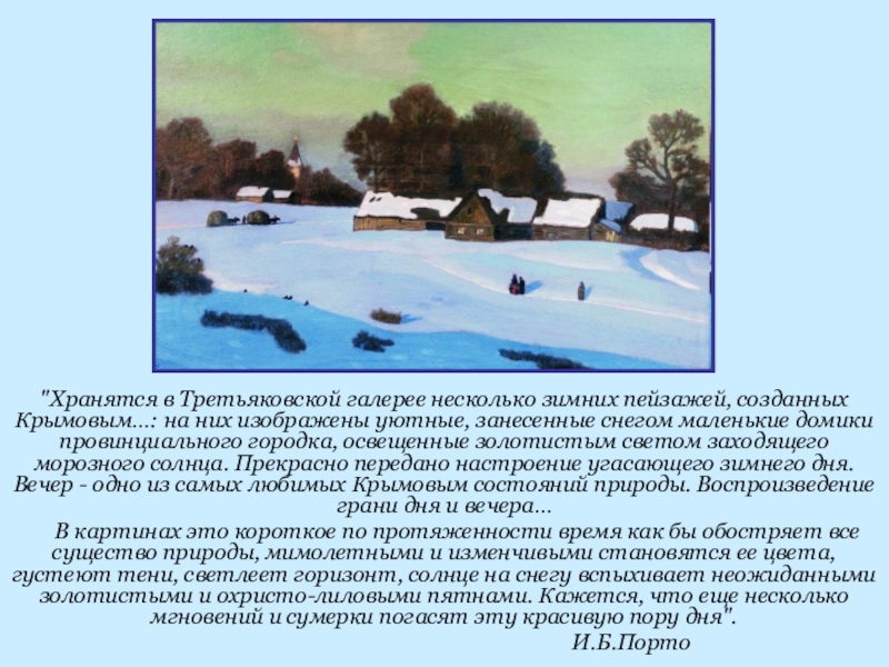 Слайд 13"Хранятся в Третьяковской галерее несколько зимних пейзажей, созданных Крымовым…: на них