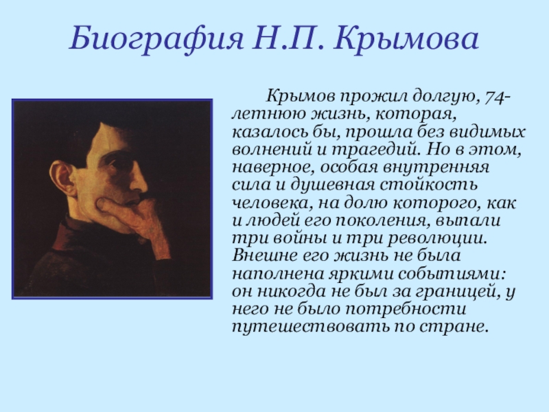 Крымов прожил долгую, 74-летнюю жизнь, которая, казалось бы, прошла