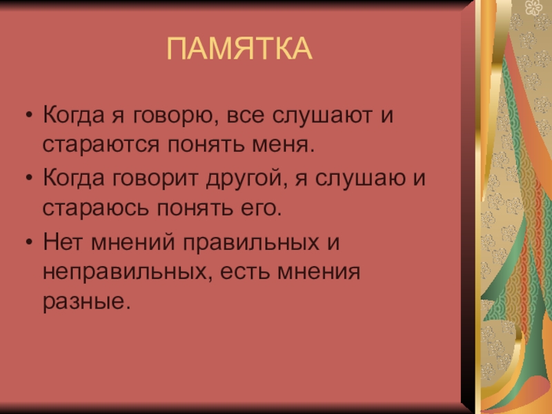 я слушаю и стараюсь понять его.