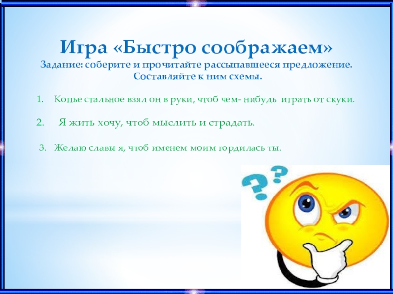 Копье стальное взял он в руки, чтоб чем- нибудь играть от скуки.