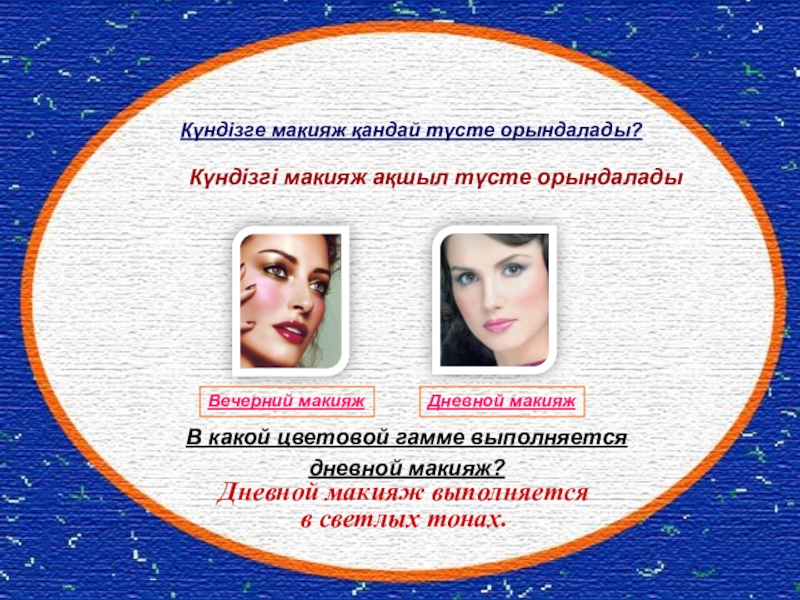 Көз макияжына қолданылады: көзге арналған қарындаш, қабаққа арналған бояу және кірпікке арналған сүрмелер.