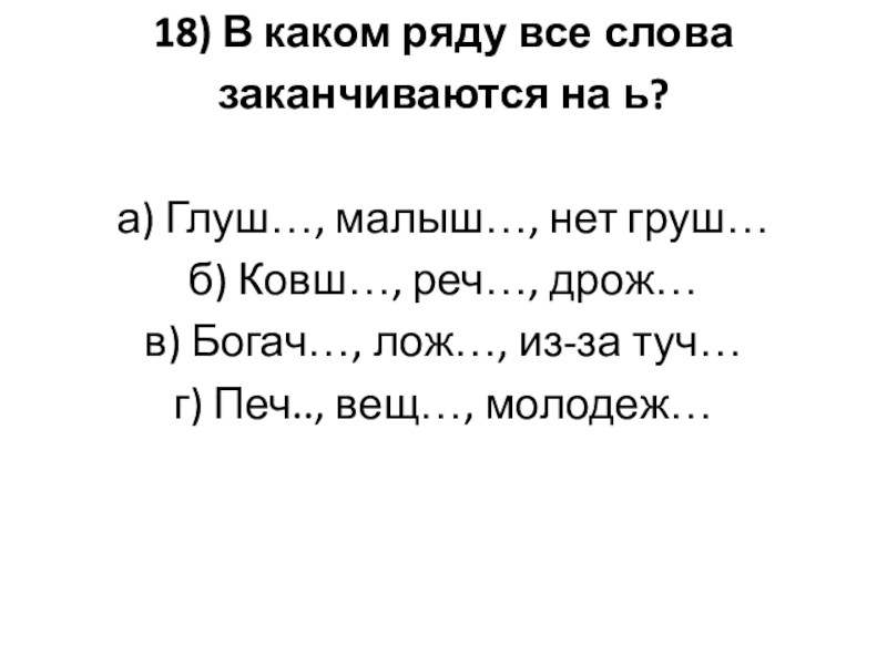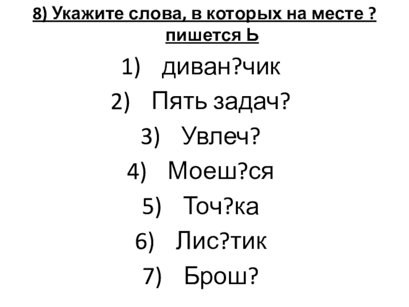 Слайд 108) Укажите слова, в которых на месте ? пишется Ь