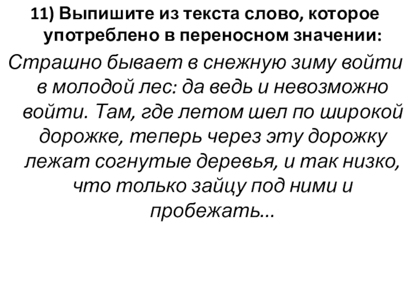 Слайд 1311) Выпишите из текста слово, которое употреблено в переносном значении: