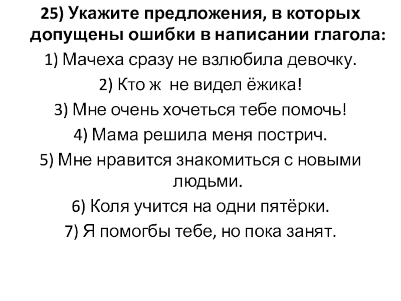 Слайд 2725) Укажите предложения, в которых допущены ошибки в написании глагола: