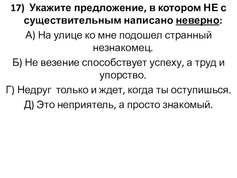 Слайд 1917) Укажите предложение, в котором НЕ с существительным написано неверно: