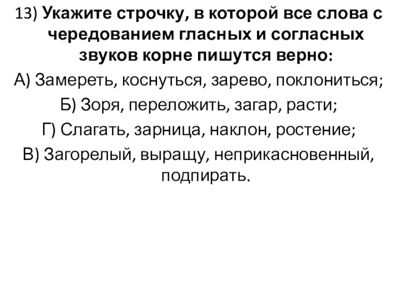Слайд 1513) Укажите строчку, в которой все слова с чередованием гласных и