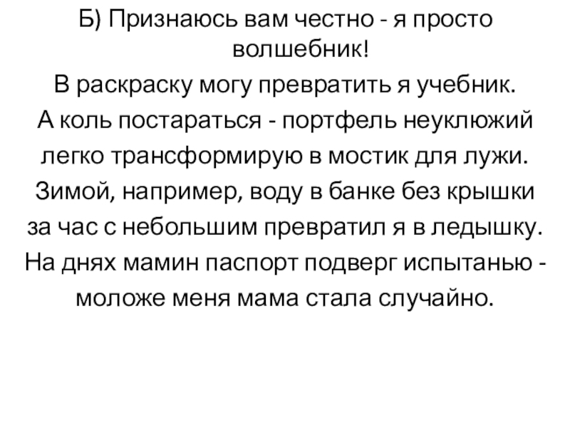 Слайд 3Б) Признаюсь вам честно - я просто волшебник!