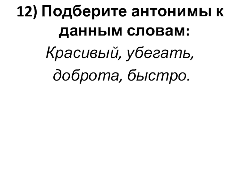 Слайд 1412) Подберите антонимы к данным словам: