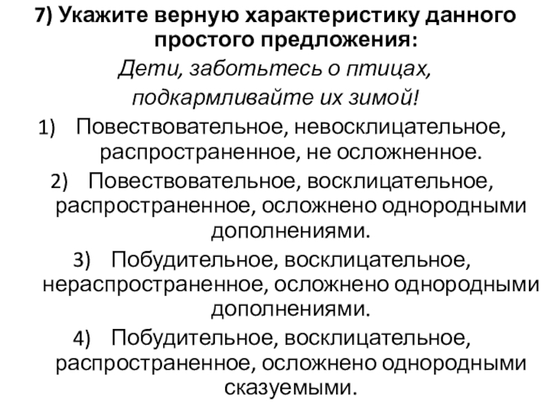 Слайд 97) Укажите верную характеристику данного простого предложения: